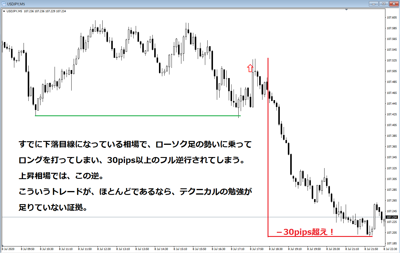 エントリーから30pips以上の逆行なら、相場の勉強のやり直し