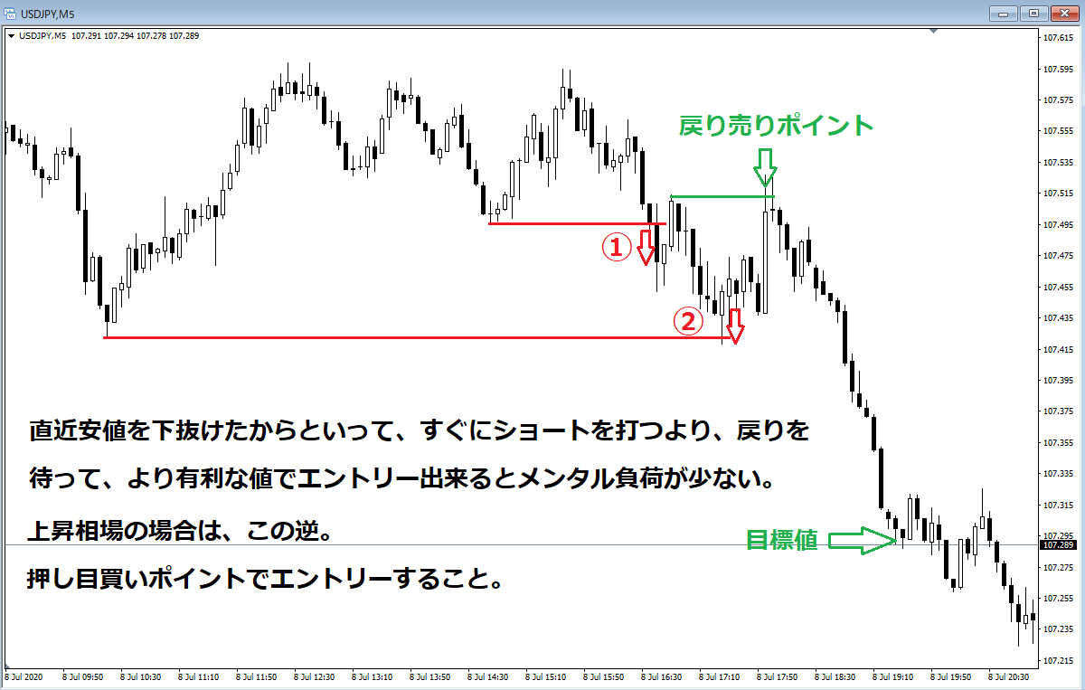 メンタル負荷を軽減させる、戻りポイントでのエントリーを心がけましょう。