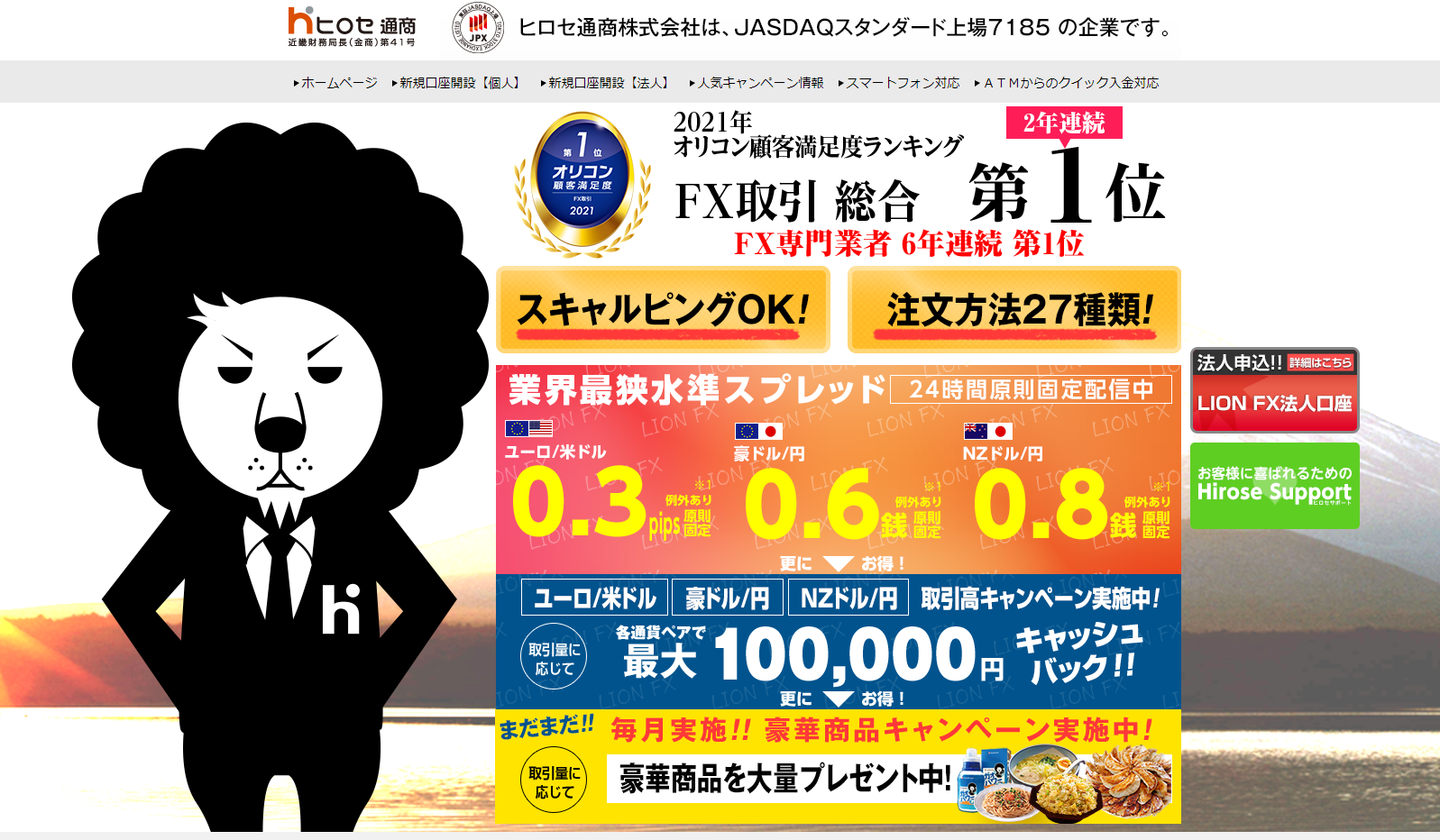 ちなみに「LION FX(ヒロセ通商)」は、次に紹介する「JFX」の親会社になります。